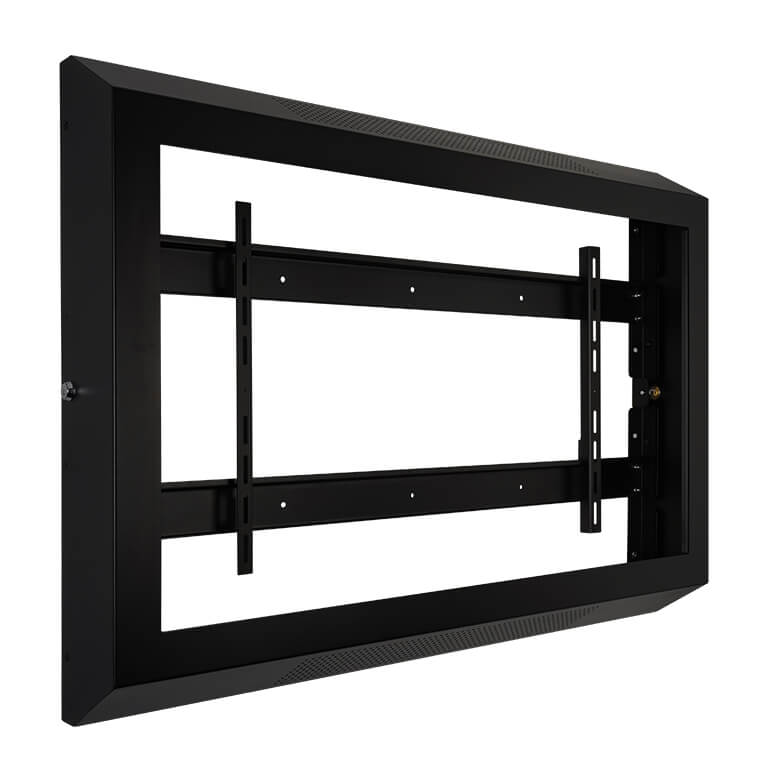 La protection ecran TV peut accueillir un écran en orientation paysage ou portrait. Chaque boîtier offre un ajustement sûr et professionnel pour la plupart des écrans compatibles avec un montage VESA standard. Conçue pour une installation encastrée sans accès arrière, elle s’intègre parfaitement à tout environnement intérieur tout en conservant un accès facile aux câbles pour les mises à niveau.