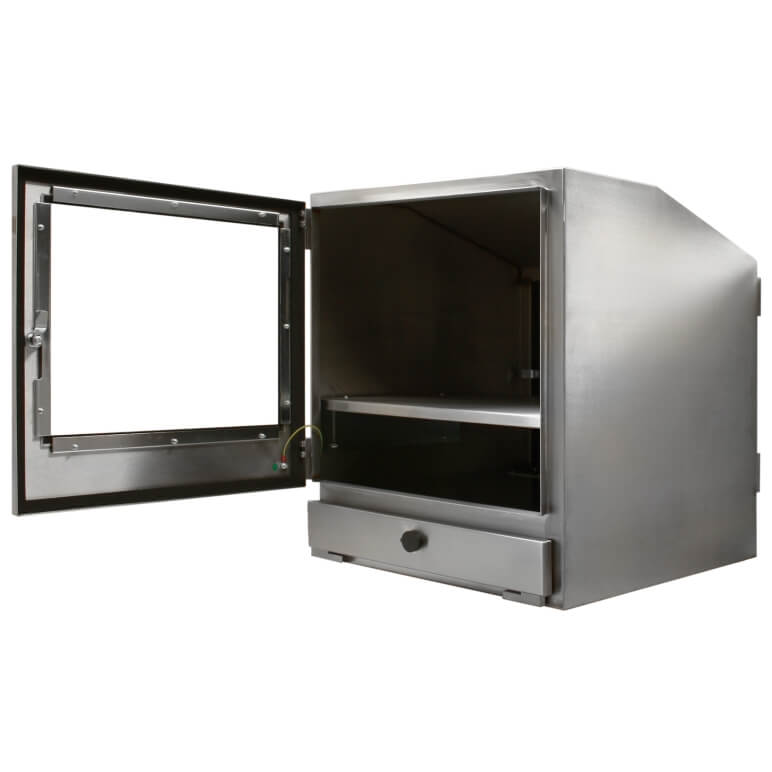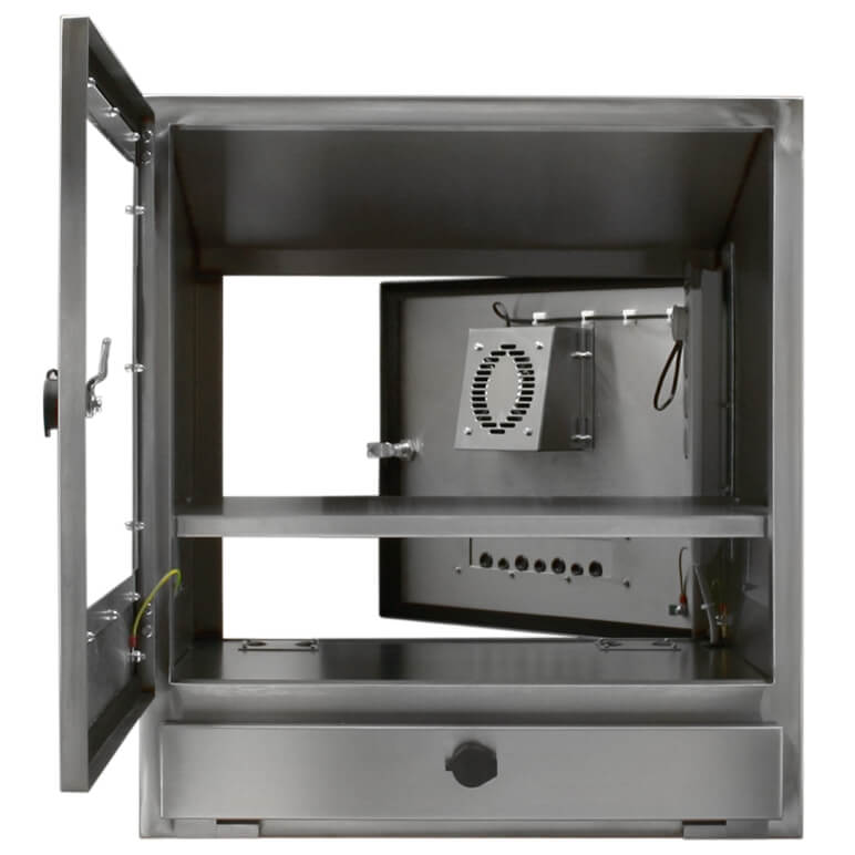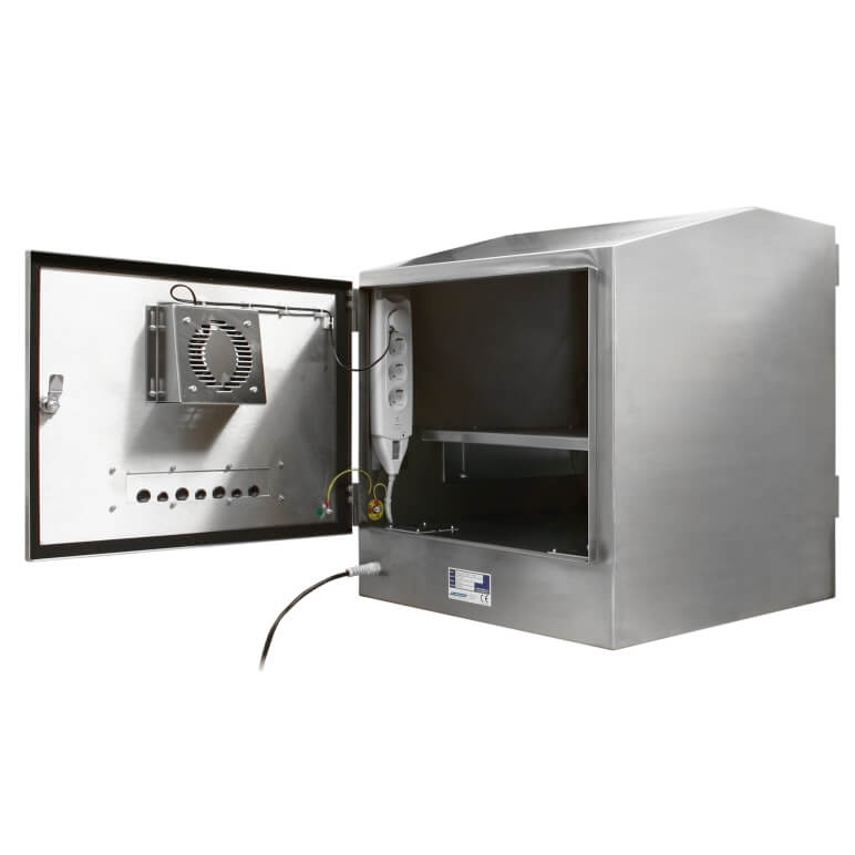 Une armoire informatique ferme inox SENC-800 est conçue pour les plans de travail et les applications qui nécessitent un support sur pied. Cette armoire IP65 et l'armoire pour moniteur convient à une large gamme de plans de travail et d'écrans (jusqu'à 19", des écrans plats et des CRT). Réalisée à partir de la nuance alimentaire d'acier inoxydable, cette armoire informatique peut être utilisée avec un clavier conventionnel et une souris, ceux-ci pouvant être rangés sur une étagère coulissante.