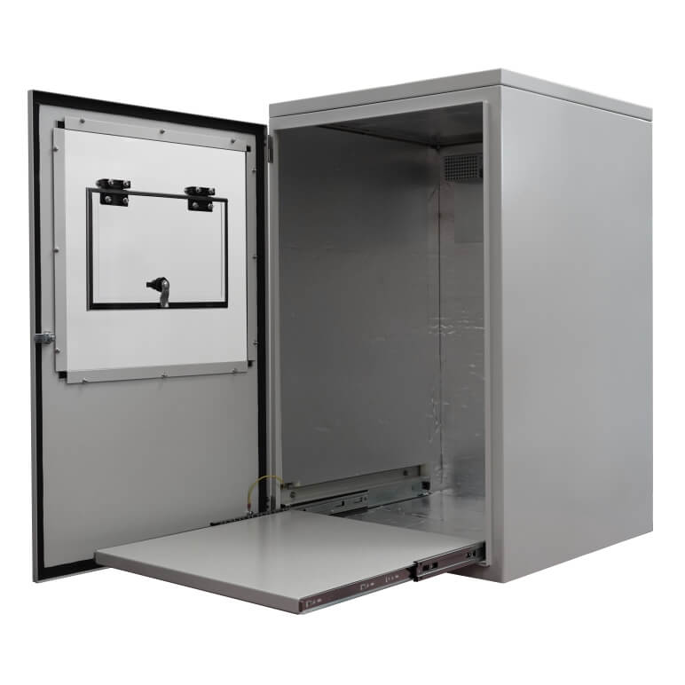 | Personnalisable | Possibilité d’ajouter des ports d’accès, des tablettes fixes & coulissantes, portes avant/arrière : avec ces options, vous pouvez obtenir l’armoire idéale qui vous convient. Celle-ci peut être utilisée comme support pour des armoires informatiques Armagard. |